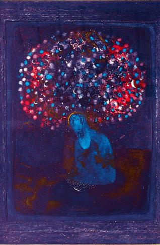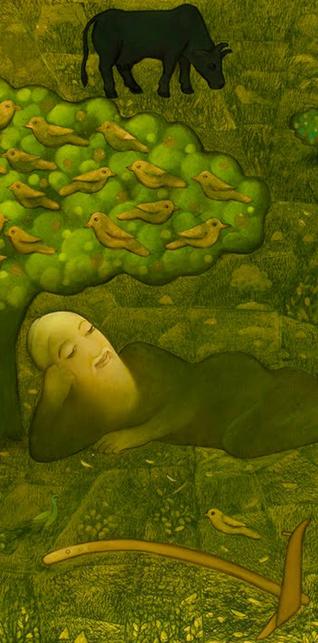 But then art for this versatile artist is not meant to dwell on the miseries and pains of life but to spread joy. So, even when he brings alive sombre concerns - the sad predicament of the "holy cow" at the hands of cow-worhipping Hindus - the imagery is breathtaking and beatific.