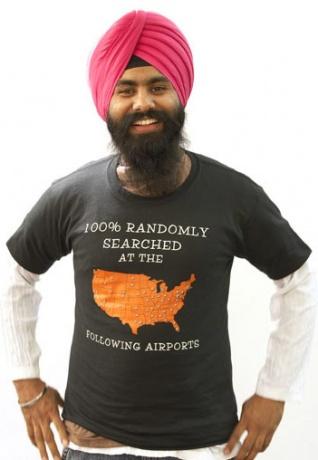 Many Sikhs try to alleviate this pressure and anxiety (at least for themselves), sometimes with humor, and other times with legal support from organizations like The Sikh Coalition. Personally, I think walking into any public space wearing a t-shirt like the one shown on the top of this page,is pretty awesome.