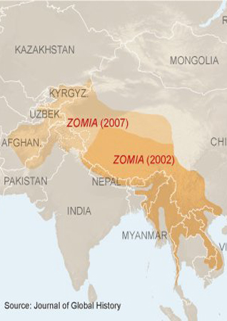 First identified in 2002 by the Dutch historian Willem van Schendel, Zomia originally included Tibet and other southwestern parts of China, northern and northeastern parts of India, most of Nepal and Myanmar, all of Bhutan and Laos, and bits of Thailand and Bangladesh. By proposing Zomia, Mr. Van Schendel highlighted a transnational area that is marginal to all the states that nominally control it. Few things unite it, except its diversity - religious, ethnic, cultural, linguistic - born of Zomia’s geographical character, dominated by the inaccessible Himalayan highlands and Tibetan plateau.