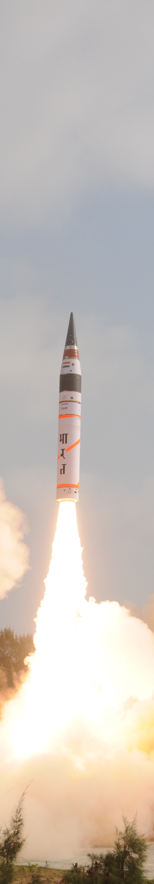 Footage showed the rocket, with a range of more than 3,100 miles, blasting through clouds from an island off India's east coast. The defense minister said the test was "immaculate."