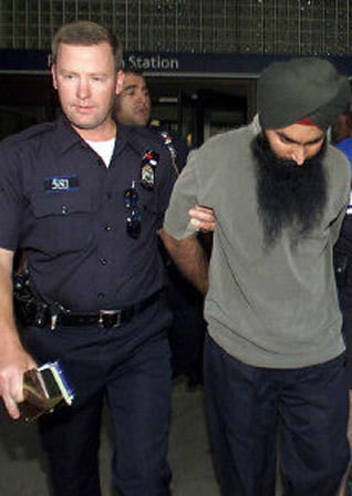 The officers removed him from the train at gunpoint and handcuffed him. According to a report by the American-Arab Anti-Discrimination Committee, bystanders gathered around Sher Singh during the time of his arrest and began shouting obscenities and hate-speech, such as: "Kill him!" "Burn in Hell!" and "You killed my brother!"