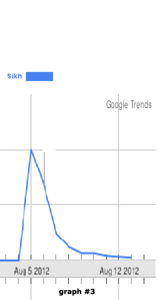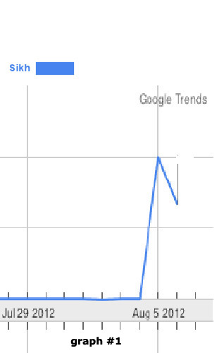 1 That upon the outbreak of the news of the tragedy on the media, public interest in the US in matters Sikh shot up, almost instantly, to a sky-high level. The starting point, as you’ll see in the graph, was negligible, that is, close to rock-bottom.