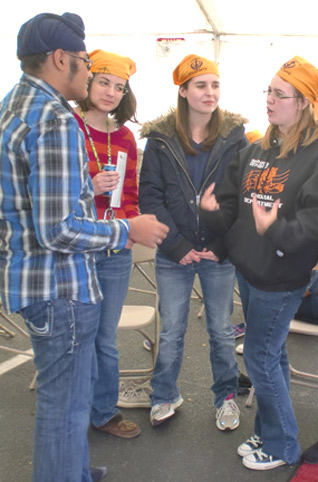 Many participants had their heads covered with the Sikh orange patkas (headscarves), and there were a large number of Sikh men and women in the crowd. Students from IUPUI and the University of Indianapolis, Butler University, Unitarian Universalist Club, Brebeuf Jesuit Preparatory School (Indianapolis); Indiana University (Bloomington); Indiana State University (Terre Haute), and AmeriCorps students joined in the walk.