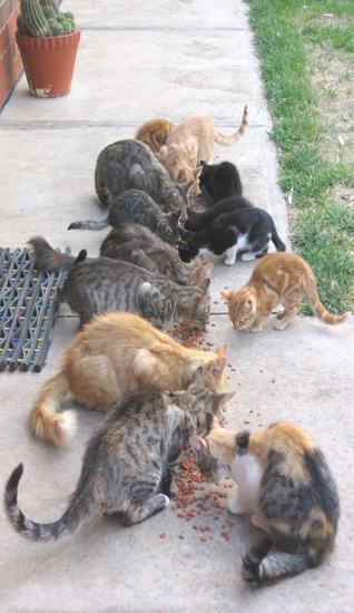 A dog, Tucker, and, at last count, 15, no 16, maybe even 17 … well, give or take a couple … cats!