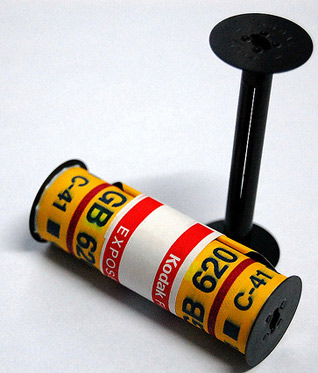 The film -- the choice was between a “120” or “620”, I remember - consisted of a roll of paper on a spool, almost three inches long and an inch in diameter. You had to load it in the back, lock the flap shut, and whirl the knob until the little counter read “1”.
