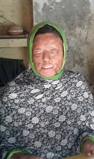 They threw acid on her face, leaving her face totally disfigured, both eyes blind and a partially deaf ear.