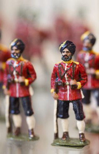 Now, the 45-year-old is standing in a room where you can read about the first Sikh soldier to win a Victoria Cross (Captain Ishar Singh, 1921), look at propaganda posters extolling the virtues of the mighty Sikh whiskers, and admire row upon row of toy soldiers in turbans.