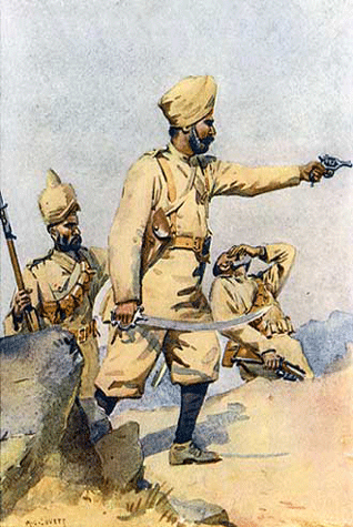 During World War 1 in 1915, 14th Sikh was involved in intense hand-to-hand fighting at Gallipoli in Turkey. The battalion lost 371 officers and soldiers. The Sikhs refused to give up even an inch of ground. The enemy trenches were found blocked with the bodies of turbaned Sikhs, who died while fighting at close quarters.