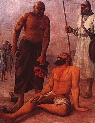 Zakriya Khan ordered the public torture and slow execution of the Sikh, commencing with the shearing of his 'kesh'.
