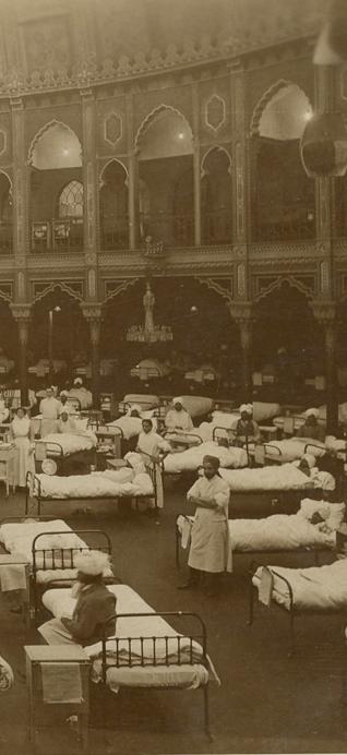 In November came the news that the Indians wounded on the Western Front were to be sent to Brighton and that the Pavilion was to be taken over and converted into a military hospital. The urgent need for hospital accommodation of the Indians arose from the fact that there had been a fire on one of the ships moored in Southampton Water to serve as temporary hospitals.