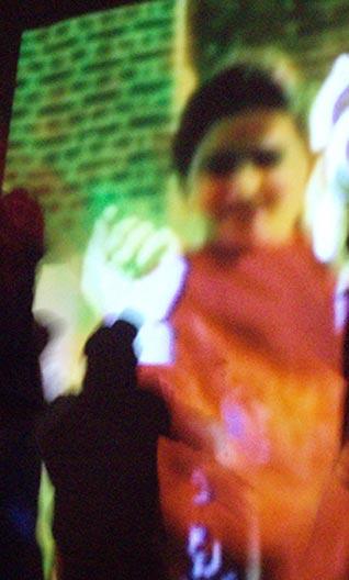 The music kicks in, our bhangra faces switch on (a combination of smiling and veiled nervous, excited faces) and we start dancing to the packed crowd before us. It is a performance unlike any other. There is a live video of our dancing projected on the wall behind us, morphed with an array of changing colors and textures. And the crowd isn't just staring at us. They're dancing in their spots as we move across the stage.