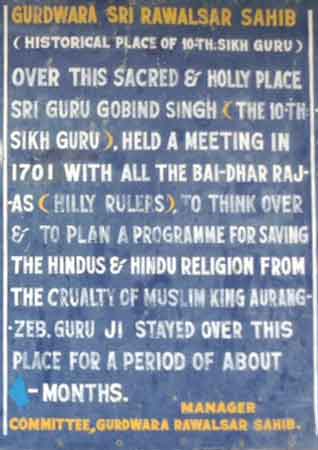 A gurdwara at Rawalsar (in present day Himachal Pradesh), which is about 25 km from the township of Mandi, commemorates the place where the proclamation was made.