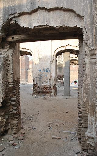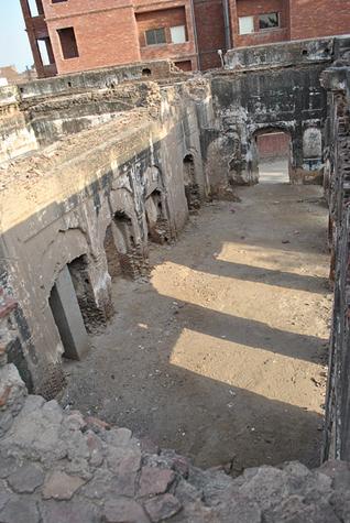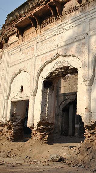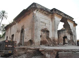 Neglected for many decades, the baradari was almost completely destroyed in 1992 when mobs set it afire in misdirected retaliation for the destruction of the Babri Mosque in India by fundamentalist Hindus in 1992.