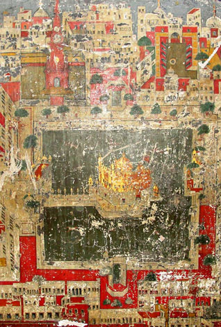 Photos by author. Above: Atam Singh's Haveli (Daultala). Below, 2nd & 3rd from bottom: Khem Singh Bedi's Haveli (Kallar Syedan) & Golden Temple fresco. 1st from bottom: Bakhshi Ram Singh's Haveli (Kontrilla).