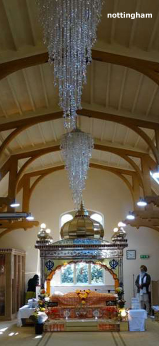 At the Guru Teg Bahadar Gurdwara on Church Street, Nottingham, major internal renovations have also been carried out since the building was purchased in 1977. This was once a school attached to the neighbouring Holy Trinity Church, and is a Grade II-listed structure, noted for its group value.