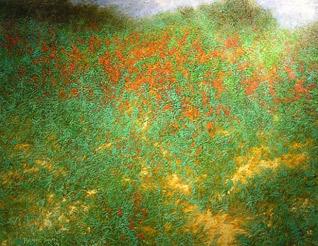 But all were ‘new’, in almost every meaning of the word. An overpowering absence of figures in the art work bring alive the assertive presence of the ‘third’. Golden and red grass on his canvas are just perfect for beautiful feet, to be the ground beneath.