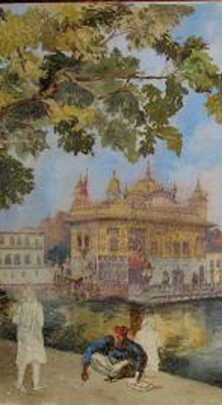 Historic painting of the Darbar Sahib in Amritsar, c 1850s, from the sketch album of 1st Lieut. Joseph Henry Jollife of the Royal Marine Artillery, East India Company. Watercolour measures 35cm by 26cm. The watercolour would have been executed shortly after the British annexed the Punjab. Provenance – Scottish Collection.