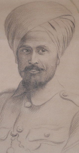A fine drawing of a Sikh soldier in France dated 1916. An exceptional drawing of a Sikh soldier by Rod Vacha (Czech artist) signed by the artist and dated 1914. Also inscribed: ‘Ishar Singh (Sikhs)’ and further inscribed in Punjabi, probably by Ishar Singh himself. Over 138,000 Sikh soldiers fought in Belgium and France during World War I. Measures – 33cm x 22cm. Guide Price: £600.00 - £800.00