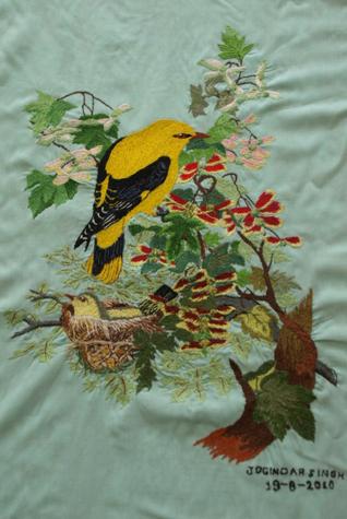 When what looked like a painting turned out to be embroidery under the lens, my eyes went to the name of the artisan, expecting it to be some woman ... It spelt - "Joginder Singh".