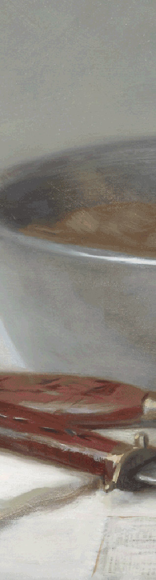 Parshad, an oil on canvas still-life painting measuring 16x20 inches, is a solemnization of a timeless Sikh practice which forms part of the daily worship service, but expressed in a Western visual language.