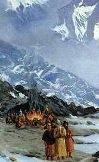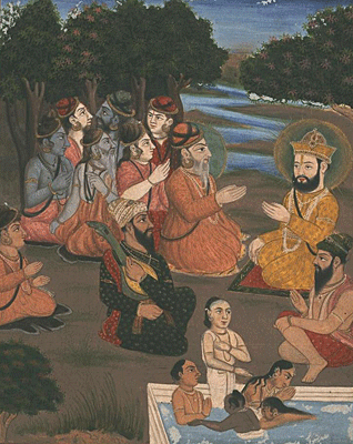 Snuggled in the Guru Granth Sahib on pages 938-946 are seventy-three exquisite stanzas that encapsulate the philosophy of Guru Nanak. Written in a musical measure is a discourse between Guru Nanak and the Nath yogis. The latter were ascetics (siddhs) who had renounced the world and made their home in the caves of the Himalayas, where they practiced their religious austerities; they subscribed to the belief system that certain mental and physical exercises are necessary for acquiring occult powers (also known as siddhs), which in turn would lead to the attainment of liberation.
