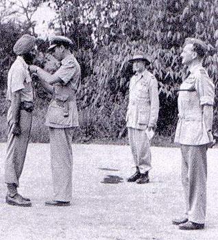 Immediately below: Lord Mountbatten pins the Distinguished Flying Cross on 25-year-old Arjan Singh. Second from bottom - the Air Marshal surveys the area of operations of the 1971 Indo-Pak War.