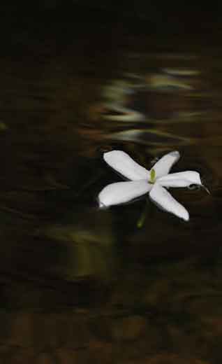 Graciously, the Guru placed a jasmine flower atop the bowl full of milk, and returned the gift. The milk did not spill. The flower simply floated on the surface of the milk.