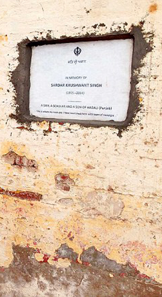 “In memory of Sardar Khushwant Singh / A Sikh, a scholar and a son of Hadali (Punjab).”