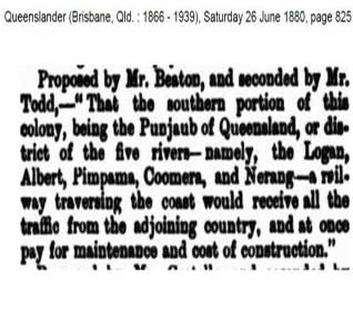Several newspaper items preserved in Australia's national archives show that the area was formally named Punjaub in 1880, and it was specifically given this name because it had five rivers that flowed through it - Logan, Albert, Pimpania, Coomera and Nerang.