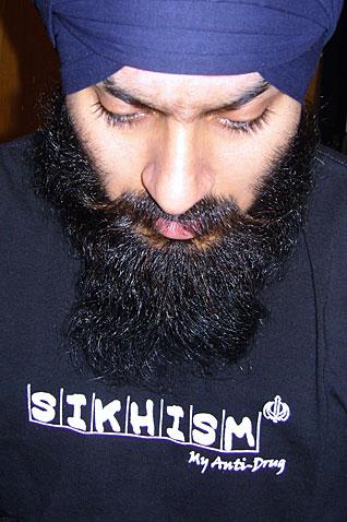 Additional inspiration for living a Sikhi-oriented life is given by the "SIKHISM - My Anti-Drug" design, as well as my personal favorite: the one that proclaims "Hottest Turban" on the front, with an arrow that points up to the wearer's head (adorned with a real-life dastaar, presumably) and, on the reverse side, has seven well-chosen "My Turban is ..." phrases, such as "... a crown of dignity" and "... a promise of integrity."