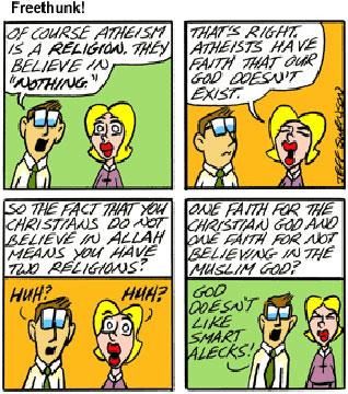 A couple of things about atheism and faith: The definitions of God and Atheist, according to the dictionary: Atheist - One who disbelieves or denies the existence of God or gods. God - 1) A being conceived as the perfect, omnipotent, omniscient originator and ruler of the universe, the principal object of faith and worship in monotheistic religions. 2) The force, effect, or a manifestation or aspect of this being. 3) A being of supernatural powers or attributes, believed in and worshiped by a people, especially a male deity thought to control some part of nature or reality. An image of a supernatural being; an idol. [Yahoo] Now let us see what is Ik Oankaar according to the Mool Mantar. Ajauni Sahibhang - Creative Energy. In other words, not a personified deity whom the atheists define as God. So, in anutshell, what/whom the atheists reject as God has nothing to do with Ik Oankaar. In fact, I have many atheist friends who understand the concept of Ik Oankaar in Sikhi very well and appreciate it. That is why I never refer to Ik Oankaar as God or Lord.