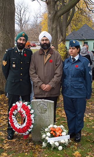 Sgt Gurpreet Singh Dipak from the Hamilton Army unit and veteran Harjit Singh Bains laid a wreath on Sardar Buckam Singh's grave.