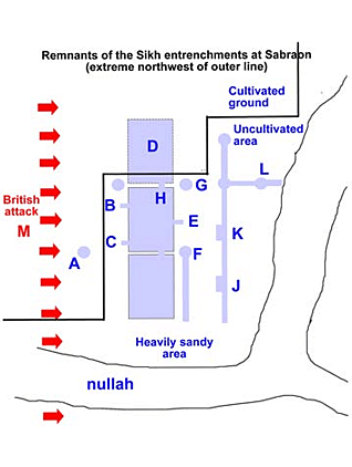 A matter of weeks after the battle of Sabraon and the end of the first Anglo-Sikh War, the British destroyed the wooden fortifications around the southern and eastern portions of the Sikh entrenchment which had been erected by the Sikh army.