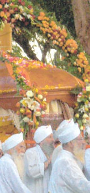 It is placed on a specially prepared palanquin and carried on the shoulders of the faithful to a newly constructed gurdwara within the grounds of the Makindu Sikh Gurdwara, one of the most revered Sikh shrines in the world outside Punjab anmd India.