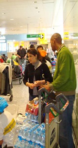 Volunteers from an international UN affiliated, humanitarian relief organization, UNITED SIKHS, responded to an SOS call for hot meals from Heathrow airport and fed the stranded hungry travellers on Monday and will continue doing so until end of the air traffic crisis (triggered by Iceland's volcanic eruptions and the total shut-down of air-traffic across Europe).
