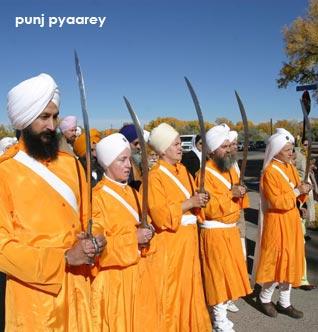 [** In dwelling on this passage, it became increasingly evident and compelling that we need to pause - even at the cost of a slight digression - and reflect on the iconic figures mentioned as well as the institutional implications, particularly around the Punj Pyaarey. Accordingly, we will take up the remainder of the passage, from "Jinaa(n) naam jap-eaa ... " with next week's discussion.]