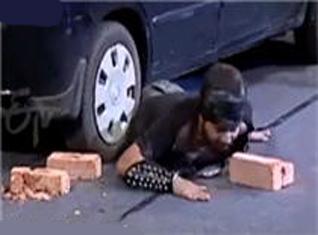 They are shown chewing on what looks like glass, smashing bricks with a hammer on their faces and pulling a car with their teeth. And it gets worse: one guy gets simultaneously run over by a car and a motorbike while another plunges four or five meters, bare-chested, through tubelights. The grand finale shows three of them sandwiched between beds of nails while (just to make sure it really hurts) others hammer them down.