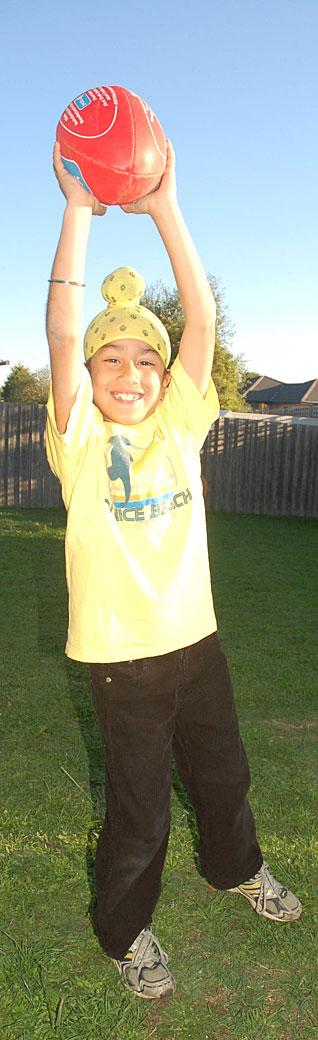 But when it comes to footy, they have an edge over the others. Not only do they have a footy team to barrack for (it's sacrilege not to belong to a team), they wear their team colours whenever possible and to top it all - they wear a matching patka with it, something the other Aussie kids can't do!