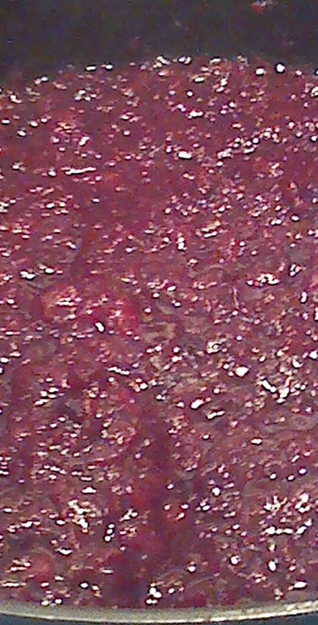3 Cook uncovered and bring to a boil, stirring occasionally. Simmer for about 1.5 hours – covered at times. Check consistency – it thickens more as it cools down.