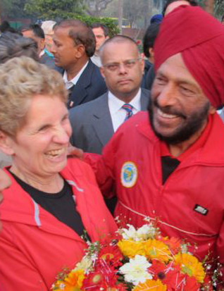 Kathleen Wynne, Premier of Ontario, Canada, visiting Punjab and leading a trade delegation, went for a sunrise sprint with Sikh-Punjabi track-and-field legend Milkha Singh at scenic Sukhna Lake in Chandigarh on Wednesday, February 3, 2016.