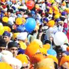 A sea of turbans crowded around Gov Jerry Brown in the Capitol in Sacramento when he