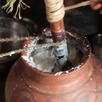 Fashion two boats out of kukkrri and scoop out the seeds. Pack the