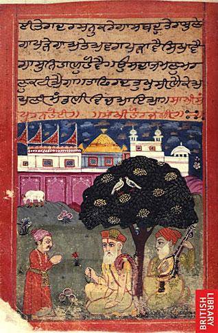 The two images of pages from an 18th century Janam Sakhi, depicting Guru Nanak and Mardana: courtesy - The British Library, London.
