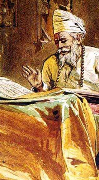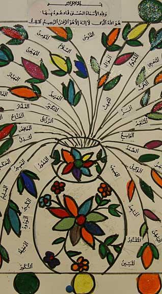 [Images on this page: Top - A granthi reads from the Guru Granth. Bottom - Some of the 99 names of God in Islam. Second from the bottom - Some of the 72 names of God in the Qabbalah tradition of Judaism. Third from bottom - A Sikh family receiving parshaad (Sikh sacrament) at the conclusion of a "naming ceremony". Thumbnail - Soldiers of the famed Sikh Regiment look for familiar names made immortal on the Honour Roll.]