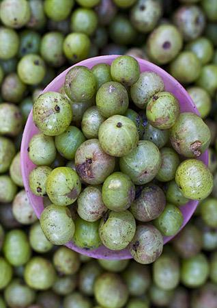 On the counter by the sink in the kitchen are a stainless steel pitcher of cool water and a bowl of amla - Indian gooseberries - a seasonal delicacy eaten with spicy dips by northern Thais. At first bite the hard, pitted fruit has no flavor, and then it's sour and bitter, with an astringent finish that sucks all moisture from the mouth.