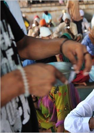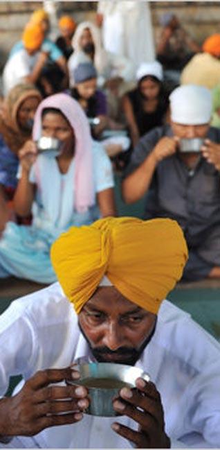 It is lunchtime at what may be the world's largest free eatery, the langar, or community kitchen at this city's glimmering Golden Temple, the holiest shrine of the Sikh religion.