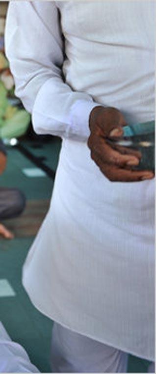 Ashok Kumar, a Hindu with a scraggly beard, has been coming to the kitchen for the past five years - all day, almost every day - to work as a volunteer. "It is my service," he explained, after reluctantly taking a very brief break from his syncopated tray sorting.