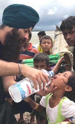 But Khalsa Aid has stood out for its dedication. Last week, a photograph of one of its volunteers clad in a dark blue turban offering water to a young refugee girl evoked strong hate reactions from India’s Hindu extremists, who have been cheerleading the Myanmar Army for their ethnic cleansing.
