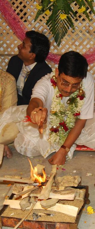 The Hindu marriage consists of seven laavans around a havan (fire) while we do four around the Guru Granth Sahib.
