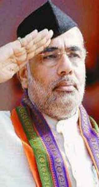 Above: mass-murderer Narendra Modi, dressed in the uniform of the right-wing fundamentalist Nazi-style militia, the RSS, gives a salute to a group of similarly attired hooligans. He is now the primary contender for India's prime-ministership.